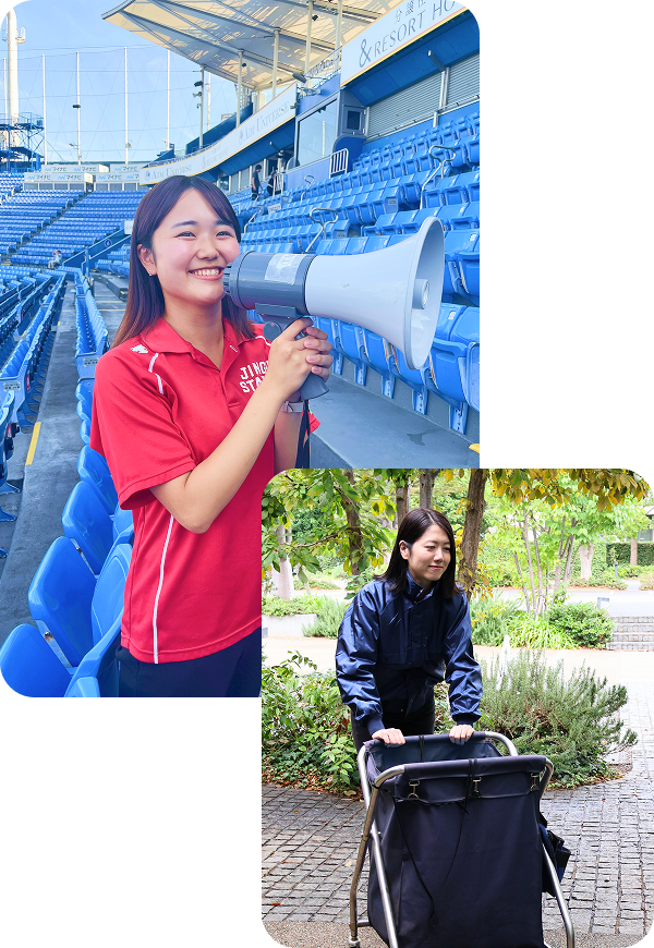 配属は本人の希望や適性を考慮し、イベントマネジメント、ビルマネジメント、人財サポートなどの事業部門、またはそれらを支える管理部門と、グループ全社のさまざまなフィールドから決定します。自分ならではのやりがいを見つけ、そして自分らしいキャリアを描けることも、さまざまなフィールドが広がる当社グループで働く魅力のひとつです。